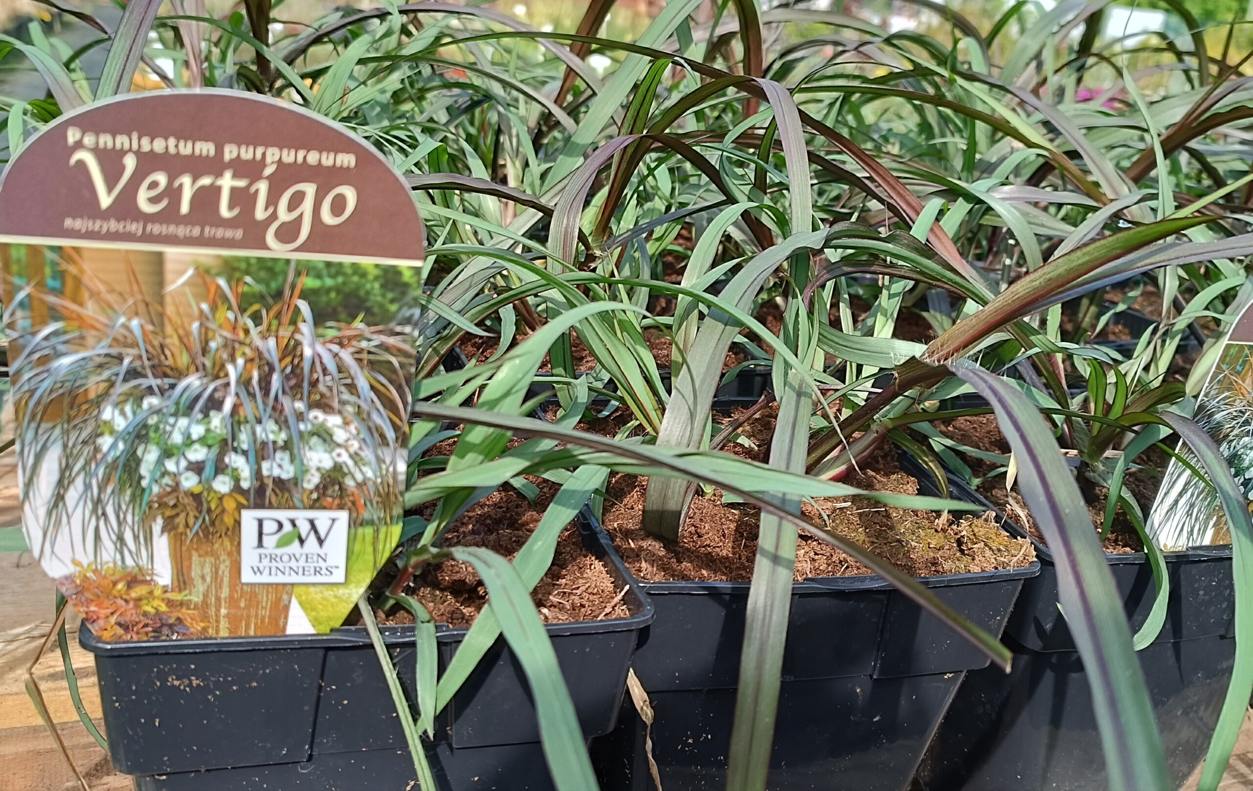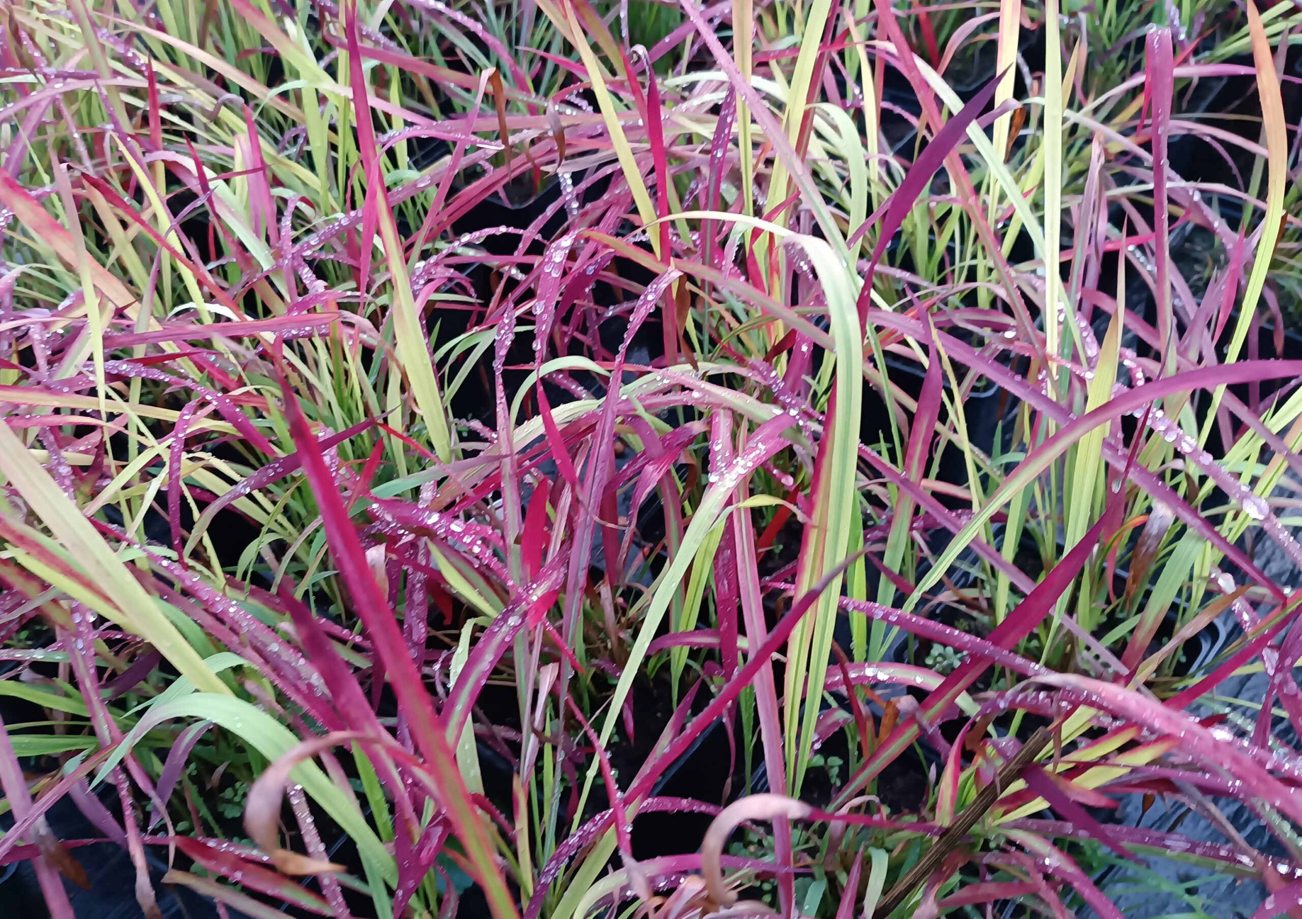 Imperata Red Baron (czerwona), Hakonechloa All Gold, Palczatka Standing Ovation oraz mozgi trzcinowate (Arctic Sun, Feeseey).